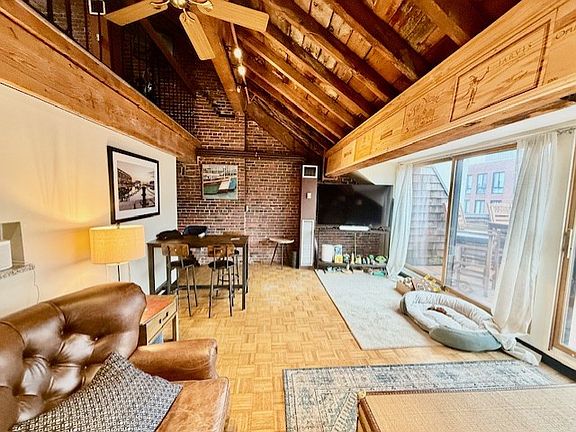 $4800! AVAILABLE SEPTEMBER 1! Discover the epitome of waterfront living in this rarely available, beautifully appointed 2-bedroom, 1.5-bathroom duplex apartment in Boston's coveted North End. With stunning harbor views from two private outdoor spaces and a rooftop oasis, this home offers the perfect blend of luxury and convenience. The spacious living room features direct access to a private balcony, ideal for enjoying the picturesque surroundings, while the galley kitchen is equipped with sleek appliances, including a dishwasher. A versatile loft area provides the perfect space for a home office, and both queen-sized bedrooms offer their own access to private outdoor decks with breathtaking water views. Additional amenities include central air conditioning, heat, and hot water included, on-site parking available for an additional cost, an elevator building, laundry facilities in the building, and a common roof deck. This residence offers an unparalleled lifestyle in one of Boston's most desirable neighborhoods. Contact: Mario Fiume Anzalone Realty 383 Hnaover Street Boston, MA 02113