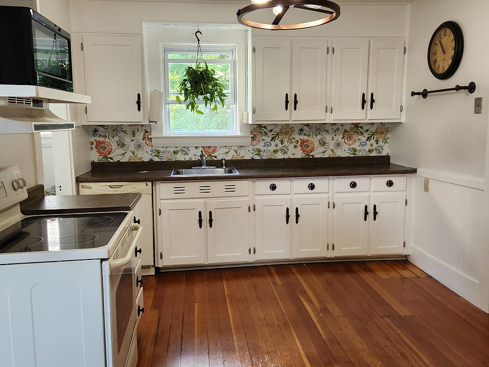 Restored country farm house style apartment. Bright and beautiful apt with Heat included! Spacious eat in Kitchen and a dining room. Washer and dryer included on Main floor. Updated electrical! Gleaming original hardwood floors. new fresh paint , light and bright and cheery! New upgraded designer light fixtures. Alot of yard and the potential for a beautiful flower garden in the back yard. private front porch! Heat included!