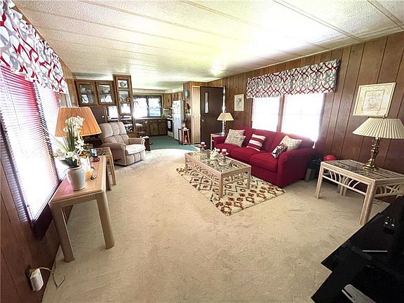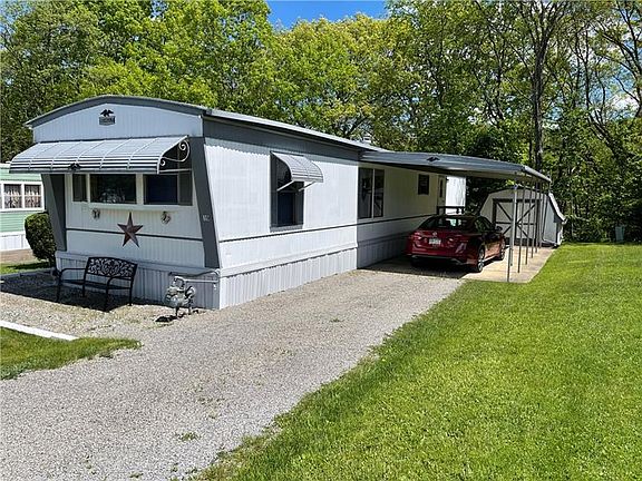 Very well kept 2-bedroom Schult mobile home located in peaceful, quiet Holly Hill Mobile Home Park. Eat-in kitchen has a bay window and pantry. New bathroom with walk in shower and laminate flooring was added in 2021. Open floor plan with newer carpeting and built-in cupboards between living room and kitchen. Wonderful covered front porch for relaxing. Includes a car port and shed. You must see it to appreciate the excellent condition. More pictures coming as home is cleaned out. Only one dog per residence in mobile home park and mobile home cannot be moved. Conveniently located approximately 15 - 20 minutes from Cranberry, turnpike, routes 19 and 79 and just about 10 minutes from route 65.