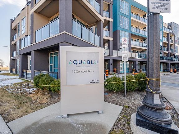 Chic Condo Living in Grimsby on the Lake. Welcome to Unit 308 at 10 Concord Place, a stylish and contemporary one-bedroom condo in the sought-after AquaBlu building. Offering 600 sq. ft. of thoughtfully designed living space, this unit features 9-foot ceilings, expansive windows, and a spacious terrace balcony perfect for relaxing or entertaining.The modern kitchen is equipped with stainless steel appliances, sleek cabinetry, and ample counter space. The open-concept living area is bright and inviting, ideal for cozy nights in or hosting friends. The spacious bedroom offers comfort and privacy, while the well-appointed bathroom boasts modern finishes.This pet-friendly building offers incredible amenities, including a gym, party room, and a stunning rooftop patio with BBQs perfect for enjoying warm evenings by the lake. Located just steps from Grimsby's waterfront, you'll have easy access to walking trails, shops, and dining, with convenient highway access for commuters. Don't miss your opportunity to experience lakeside living at its finest. Book your private showing today!