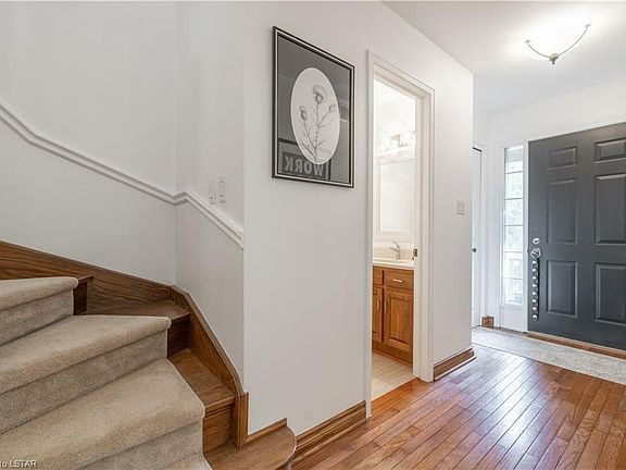 Step inside this meticulously maintained 3-bedroom, 2-bath family residence, boasting a spacious 2-car garage. Graciously situated in the tranquil heart of a Thamesford cul-de-sac, this home enjoys close proximity to a variety of amenities, including a splash pad, parks, an arena, and a skate park. The charming wrap-around porch and mature landscaping create an inviting outdoor space with room for outdoor activities on the oversized pie-shaped lot and a separately fenced heated in-ground pool. Upon entering, you'll discover an open-concept kitchen, dining, and family room with a gas fireplace that seamlessly complements the formal living room. The main floor mud/laundry room adds an element of practicality and convenience. Upstairs, three spacious bedrooms share a 4-piece bath, and the partly finished basement offers a family room, office/bedroom/hobby space, cold room, and ample storage. With upgrades like hardwood floors, granite counters, custom window coverings, leaf guards on eaves, a safety cover for the pool, and a new pool pump (2022), this home balances style and practicality. A large 2-car garage, double driveway, and three garden sheds cater to storage needs. Enjoy a shaded, covered patio and easy access to London, Ingersoll, Woodstock, and the 401 highway.