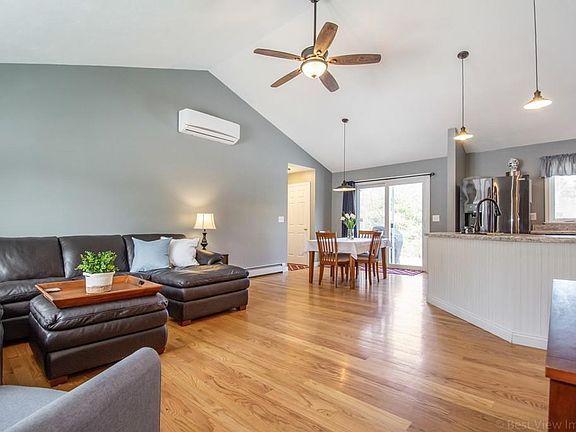 This open concept ranch home offers all the advantages of a like-new home with the benefit of one level living and a desirable and well established neighborhood community. At the hub of this beautiful home is an enviable white cabinet kitchen with breakfast bar & stainless steel appliances opening to a sun drenched dining area and generously sized living room w/vaulted ceiling where visitors can comfortably gather. Sliders open to a useful deck overlooking the private backyard inviting you outside on those warm summer days. 3 generously sized bedrooms and updated full bath complete the 1st floor. Excellent expansion potential in the spacious lower level. Handsome hardwood floors,convenient 2 car garage,high efficiency gas heat, town water and seller owned solar panels. Enjoy a friendly community complete with fairs,farm stands,stables,orchards & parades - country living at it's best!