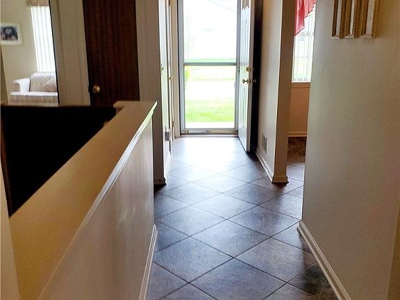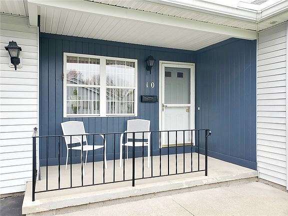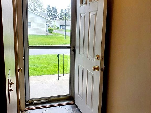 This spacious 2 bedroom, 2 full baths listing has an open floor plan with loads of windows. A cute cut-out above the kitchen sink invites loads of natural light from every angle. The master bedroom has a walk-in closet and private walk-in shower. The home has contemporary hints with neutral colors, just waiting for your personalized touches. The second bedroom (across from the second full bathroom) could also be an office, a guest room or maybe a sewing (craft) room. The kitchen has ample storage and room for a table in the "eat-in" area adjacent to the window. A great spot to catch the morning sun. There are two (2) closets in the front hall, the third closet has been converted into a first floor laundry (the stackable washer/dryer will not stay). There is also a washer/dryer hook up in the basement (dryer in the basement is working and will remain). The unfinished basement offers lots of additional space to be determined by the next owner(s). Attached garage opens into the kitchen and there is a charming front porch waiting to greet you. All kitchen appliances remain with the sale.