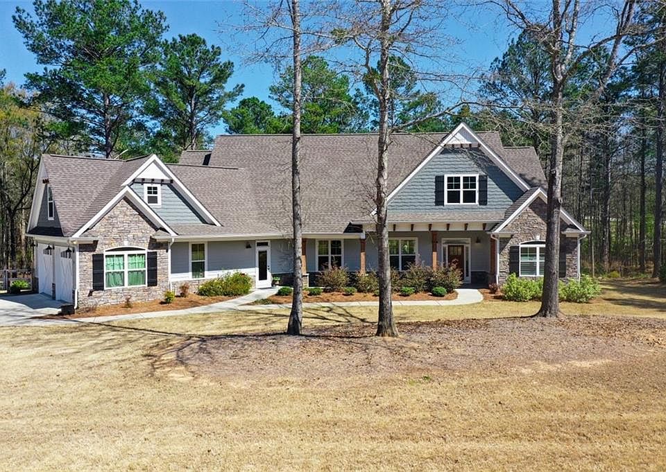This beautiful Craftsman-style home on 2 level acres has everything on your list! Amazing curb appeal and high-end finishes on (mostly) one level...all with a fenced-in back yard. Large open family room has vaulted exposed-beamed ceilings, built-ins and a kitchen/breakfast nook that opens to the rear patio with a stone fireplace. Large Owner's Suite on one end of the home with separate walk-out patio affords lots of privacy - complete with a luxury bathroom including a soaking tub, double vanities, separate tiled shower, and his and hers walk-in closets. The main floor has 3 additional bedrooms and 3 baths, a large mud/laundry room, and another room perfect for an office or playroom. Lots of high-end finishes throughout including arched doorways, crown moulding, plantation shutters, upgraded SS appliances, quartz countertops in the kitchen, granite bathroom vanities and high-end tiled baths, and a beautiful stone fireplace in the living room. This home has it all - and is located in North Newton, N of I-20 in a small, quiet neighborhood near Lake Varner and close proximity to the new Towne Center Shopping center. Make your showing appointment today!