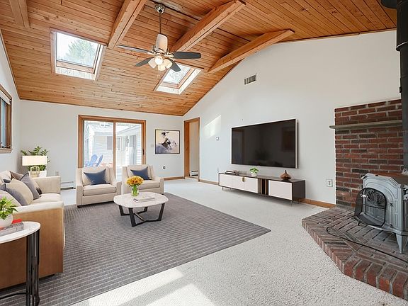 Open house canceled Nestled between Oakvale Park & Woodfield Park, and around the corner from Garden in The Woods, lives your amazing opportunity! This 4 Bed, 2 FULL bath expanded Campanelli Ranch offers flexible unique floor plan w large mudroom/entry way that leads right to the laundry closet.Continue to the huge family room w vaulted wooded ceilings, skylights, woodstove and sliders to back patio. Living room has fireplace and large bay window, kitchen is cabinet packed with greenhouse window and dining area with sliders to back patio Primary has been expanded w skylight, sliders to back patio and FULL bath.The other bedrooms are generous in size & 4th has vaulted ceiling Additionally there is a space for an office,utility room,1 car garage & enclosed patio entry way Roof & HW (10/24) Tons and tons of closet space offers storage solutions,Close to restaurants, shopping, things to do in the community,super commuter friendly. An awesome way to bring your creative ideas!