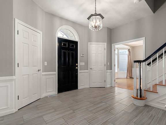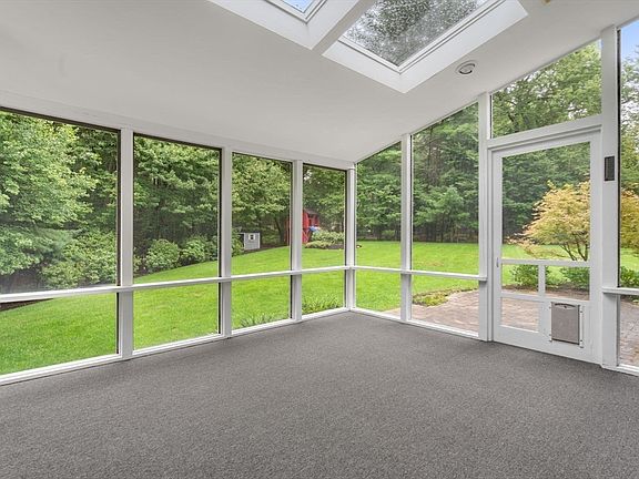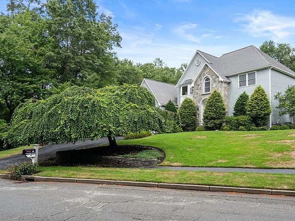 10 Country Road is a stunning, custom-built home perched on a commanding corner lot in one of Holliston's most desired neighborhoods. From the elegant stone and stucco facade to the beautifully landscaped grounds this south facing house provides outstanding curb appeal. The grand living room boasts dramatic 16-foot ceilings with a stunning fireplace flanked by two oversized picture windows which seamlessly flow to a tranquil porch and patio. The spacious chef’s kitchen features honed granite counters, gas cooking and stainless-steel appliances. Family and dining rooms have tray ceilings, crown molding, hardwood floors with intricate custom inlay, French doors and grand windows. The large primary suite is complete with a walk-in closet and spa bath. All bedrooms are well appointed with large closets. There is a fully finished basement, equipped with a wine room, bathroom and custom-built ins. The basement leads to the 3rd garage space, which is accessible via a private, gated driveway.