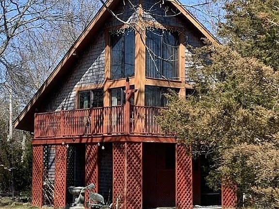 Water, water everywhere! Last house on the end of the peninsula, 360' waterviews! This very cool A Frame offers vaulted ceilings, deck, AC, and many other unique features. Reverse floor plan takes advantage of the views. Very private yet close to the highway.