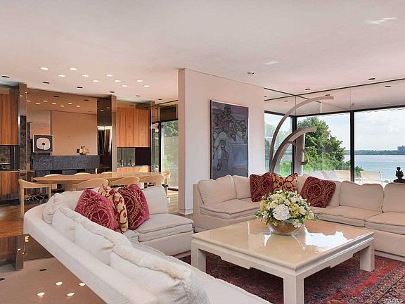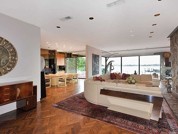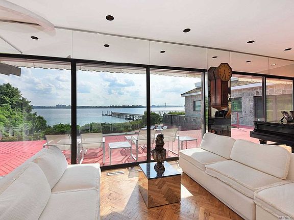 1.25 Waterfront Acre Retreat! This Gorgeous Modern Ranch is located in prestigious Village of Kings Point. An entertainer's Dream with Panoramic West Side water views of the Manhattan Skyline & City Bridges. An Oasis built by renowned architect. Spectacular sunsets, luscious green lawns and specimen plantings. This Gem features a Master Suite, 3 Additional Bedrooms, 4 Full Baths and 2 Half Baths, Lovely Eat-in-Kitchen, Spacious Living room with fireplace, Full Generator, Pool & so much more.