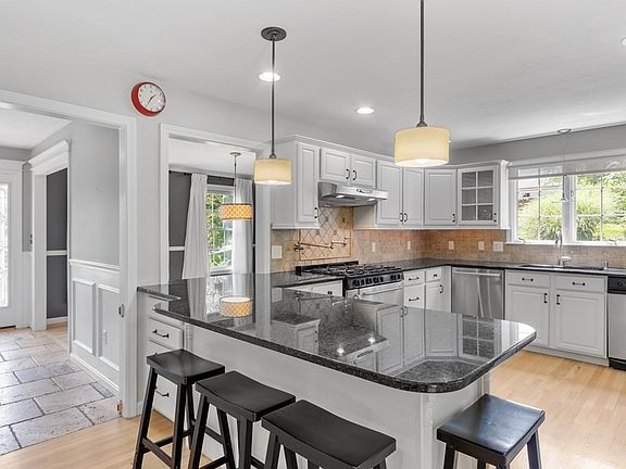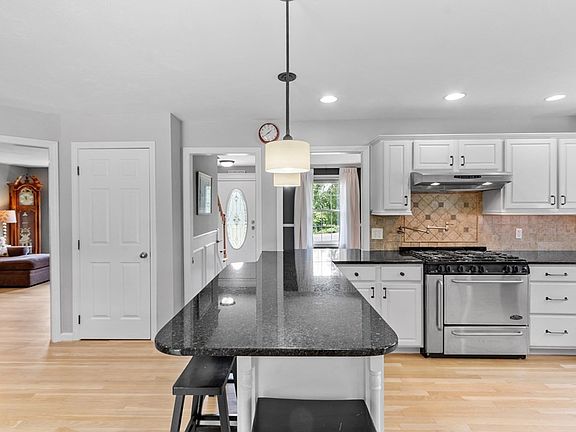 Introducing this stunning turn-key 4-bedroom, 3 ½ bath colonial on large lot This south facing home is flooded with natural light. The interior has gleaming hardwoods throughout. The kitchen has an abundance of storage, 36” gas range & 2 yr old Bosch appliances. First floor has a spacious mudroom, formal living & dining rm in the front & a great rm with vaulted ceiling & gas fireplace off the back. Second fl, has an oversized primary suite featuring a lighted tray ceiling. Its bathroom includes radiant heat, walk-in shower w multiple shower heads, steam unit, heated towel bar, dual sink vanity.Custom walk-in closet. Second fl laundry with built-in ironing board. One of the bedrooms has a vaulted ceiling & loft! Central AC. 2 car garage & shed. Property is perfect for entertaining with a breathtaking waterfall, mature plantings, large patio/deck area, new wrought iron railings. Finished basement