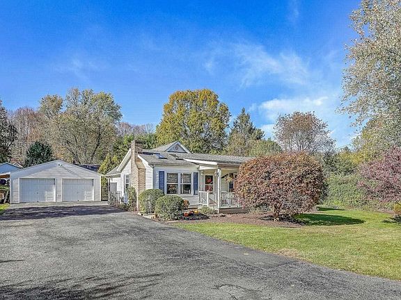 Absolutely Charming Updated Ranch Home on a Cul-de-Sac Rd. Beautifully landscaped property. Enter from your Trex Porch w/ Ceiling Fans that invite you to sit and relax. Walk into the Large Open Living Room w/gorgeous Lifeproof Laminate flooring, a pellet stove and lots of light. The Fabulous Kitchen has 2 Ovens! 2 Microwaves! Granite Countertops, quality wood cabinets, an office nook and a Center Island. Dining Area is bright and comfortable. 3 comfortable bedrooms w/Custom closets. 2 updated baths-one with radiant heat. Convenient Laundry Rm. Double-paned, tilt-in windows throughout. A Super Duper & Quiet Whole House Fan. A great attic space for storage. Outside you will find a detached 2 Car Garage w/additional Carport, behind which is a spacious storage shed. In back of the house is a lovely Cambridge Stone Patio, Above Ground Pool w/Brand New Trex Decking, a Fire Pit and Privacy! There is basement space for additional storage. Heated Gutter Helmet gutters. Close to Everything!! A 1 Year Home Warranty Included