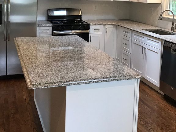 Total renovation now complete. Brand new custom kitchen with shaker cabinets, a large island, granite counters, full backsplash and GE stainless steel appliances. Totally refaced stone fireplace. Main level is all restored hardwood flooring. Dining area opens to a large over 200 sq ft deck. New recessed lighting in great room, kitchen and dining area. Open floor plan. All bedrooms have been redone. All with new fans, fresh paint and restored multi panel doors. Both bathrooms are fully renovated from the studs. Hall bath has a new tub/shower combo with subway tile surround and niche. New vanity, commode, tile floor and accessories. Master bath has a large fully tiled stall shower with a niche and a brand new vanity, medicine cabinet, commode, tile floor and accessories. All new light fixtures throughout. New bannisters and railings. New stone walkway. Fresh paint in and out. Freshly landscaped. Private backyard with creek and walking bridge. Lower level has new vinyl plank flooring through two large areas plus a large utility room with washer and dryer hookups. The under house two car garage leads directly into lower level. A detached oversized one car garage/workshop sits at the end of the long private driveway. This home is one of a kind on a quiet cul de sac in a beautiful North Haven neighborhood. Walk to town center.