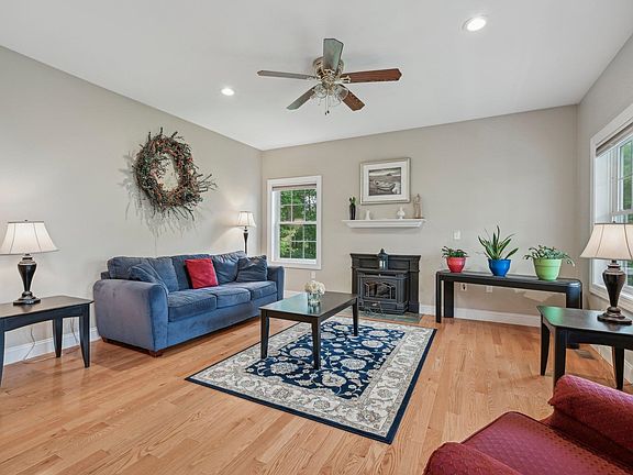 Looks and feels like new construction! This home was designed by the sellers and they have taken amazing care of both the inside and out. Farmers porch is perfect to relax on overlooking the cul-de-sac. Soaring two story front foyer offers plenty of natural light. Living room with pellet stove insert gives a warm feel throughout the home. Front dining room offers many options as an office or playroom and the eat in kitchen with grand center island, granite counters and newly painted cabinets is the perfect space to entertain! There is a 1/2 bath and direct egress to the attached 2 stall garage. The back sunroom is where you'll spend most of your time with vaulted ceilings, plenty of windows and pellet stove. There is a slider leading to the new back deck overlooking the yard with plenty of "free space" behind it to ensure it stays private. Hardwood continues up the stairs and throughout the 2nd level in all the bedrooms. There is the primary with walk in closet and 3/4 bath and 2 generous sized bedrooms with a full bath/laundry. For future expansion, there is an unfinished room over the garage that can be accessed through the 2nd level hallway. Basement is a walk out with slider and windows and also offer room for future expansion. The yard has irrigation and beautiful perennial gardens, shrubs and trees. Great location close to 111 with shopping and highway access. House is prepped for a generator and a quick close is possible!