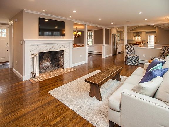 Wonderful home with newer 2nd floor addition, renovated first floor and lower level. Open floor plan with beautiful cathedral ceiling kitchen, stainless appliances, large center island and banquet style eating area. Sunny open dining room. Family room with lovely wood fireplace. Large living room. Newer addition features large master bedroom with spa like master bath and walk in closet. Two other bedrooms have large closets and share a beautiful full bath with double sinks. Second floor laundry room. Lower level has fantastic kids playroom, office and exercise room along with a full bath and a second laundry room. Gleeming wood floors, central air, speaker system, 3.5 baths and more. Great Hingham neighborhood.