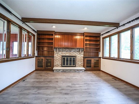 NEW PRICE! NEW UPDATES! Brand new flooring in large charming living room with wood beams, gorgeous built in bookshelves and wood burning fireplace! Fresh paint in bedrooms, hallway, foyer and dining room! New light fixtures in dining room and kitchen! You won't want to miss this amazing custom built brick ranch on a private drive with beautiful backyard! Property has been in the same family since it was built. Large welcoming front porch to greet you! Step inside the spacious foyer! Two bedrooms and a full bath with double sinks off the foyer to your right. Wonderful eat-in kitchen on your left. Generous size formal dining room with sliding glass door leading to an enclosed porch for fantastic bonus space! But, it doesn't stop there! Large mudroom area coming in from the garage leading to open stairwell to the beautifully finished basement with wood burning fireplace, full bath, kitchen area and potential 3rd bedroom! Furnace and air conditioning approx 10 yrs old, roof approx 10-12 yrs old. Hot water tank 3 years old. Don't miss the video tour!