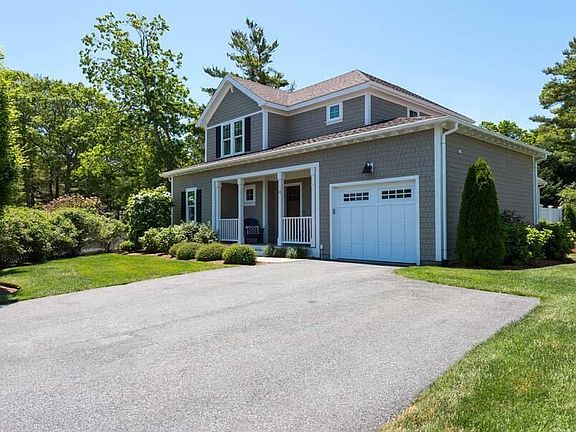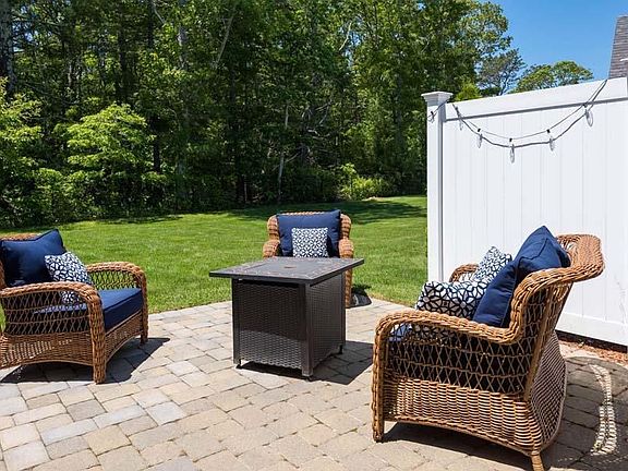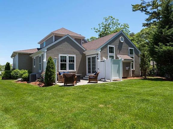 Impeccable 4 bedroom, 3.5 bath home with a 1 car garage located in The Cottages of New Seabury. This Elderberry model home has been meticulously decorated and maintained. What makes this home unique to other homes in the area is the private back yard, mature plantings, corner lot, extended patio, outdoor shower and parking for 4+ cars. This home offers a beautiful flowing floor plan ideal for entertaining family and friends. A stunning cathedral ceiling living room with gleaming hardwood floors, gas fireplace and sliders leading to an outdoor patio. A custom kitchen and dining area, fabulous primary suite, and laundry room complete the first floor. The second floor includes two spacious bedrooms and a full bath. The finished lower level includes a large bedroom, great room, full bath and storage room. This home has a maintenance free exterior so all you need to do is move in. This home is being sold furnished with some exceptions. Sellers prefer to close after Labor Day