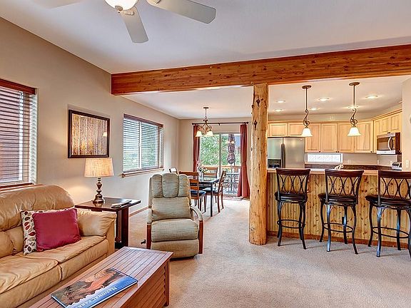 Nicely furnished, rare 3 bedroom, end unit in quiet location of Lookout Ridge. Townhome features 2 decks for morning and evening enjoyment and an oversized 1 car garage. Two bedrooms on the 3rd floor and one bedroom on the 1st floor make this a very desirable home. Low HOA dues, community hot tub, close to grocery, restaurants, marina, Dillon Amphitheater, bike path and free Summit Stage.