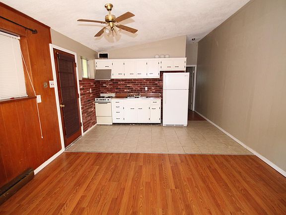 This duplex home is a must see at this price! Walking in the front door the vaulted ceiling gives a more spacious feel to the combined living room kitchen area. A side exterior door leads to the carport. Down the hallway is the full bathroom and the one bedroom with closet. This unit has fresh paint, ceramic tile floor as well as hardwood flooring. Various items in the home are original giving it a quaint little home feeling while other items have been updated brand new. The back yard is spacious. This home is located in a cul-de-sac. 1 year