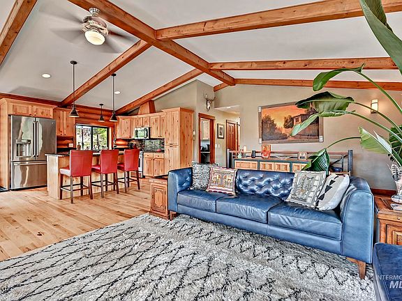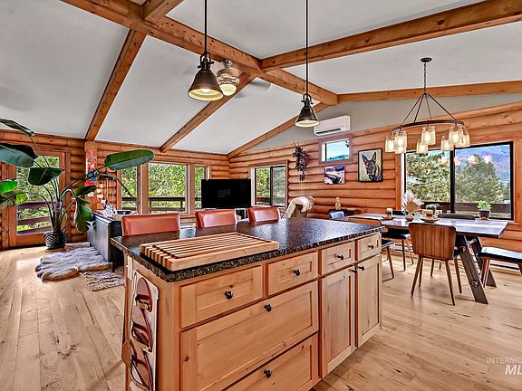Retreat to the mountains! Find your inner pioneer in this 1.8-acre Idaho mountain home just 20 minutes from Boise. Lush forests surround this 2200 sqft log cabin and the views go on forever! Gorgeous salt-water pool invites you or 30 friends to stay and play in this Idaho paradise. If not the pool, then hang out on the patio by the fire pit and soak in the joys of the mountains in the gazebo hot tub. Four bedrooms, two living rooms, office space and a spacious great room give you elbow room and unlimited options for spreading your wings. Mini-splits let you heat and cool at will and the big windows let you enjoy all the sunlight, views, and nature while keeping it all chill in the cabin atmosphere.