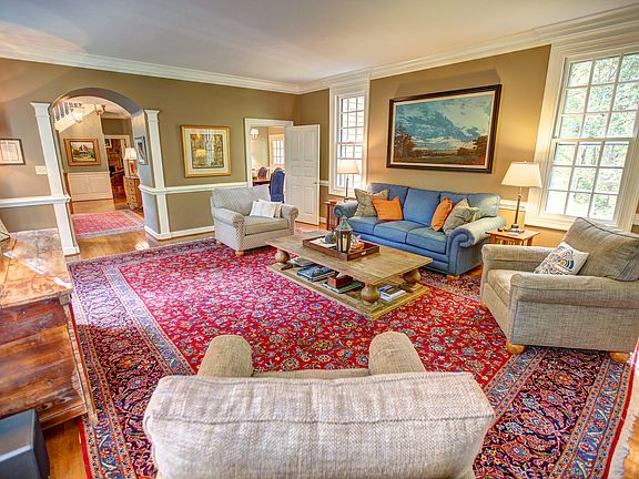 Gorgeous renovated 5 bedroom and 3 1/2 bath 2-story colonial on 1.6 private acres with wonderful layout for comfortable living and entertaining in popular River Road neighborhood. Superior quality and craftsmanship with wide-plank hardwoods, 9' 6" ceilings, and freshly painted Dove White architectural moldings and raised panel wainscoting. Large foyer with Italian chandelier and 2 cedar closets. Huge family room with cabinets and fireplace connects to dining room. Remodeled kitchen with granite, Wolf cook top, Viking refrigerator, breakfast area with fireplace, library with fireplace and paneled walls, and terrace level recreation and media room with fireplace. First floor master suite with separate entrance. The second floor ownerâEUR(tm)s suite has new luxury bath with pedestal tub and dressing room. Fabulous outdoor living with screened porch, extended blue stone patio, stone walls and garden. Low maintenance exterior has James River brick in Flemish bond, beaded redwood siding and Hendricks tile lifetime roof. Basement workshop, 14 zone irrigation, invisible fence, shed, circular double width driveway with guest parking, 5 minutes to Collegiate School & Benedictine.