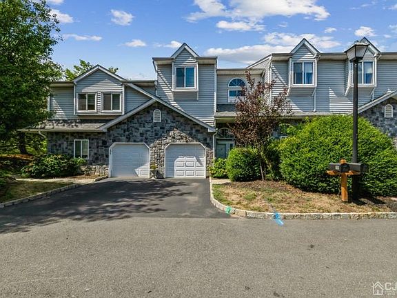 Beautiful Bridgepointe townhome now available. Marble floored entrance way. Hardwood floors on main open concept level. Kitchen has stainless steel appliances, under the counter lighting, granite countertops. Formal dining room with high ceilings and skylight. Living room has a sliding glass door leading to serene deck. Upstairs hosts new laminate flooring, 2 huge bedrooms with private bathrooms and fabulous WICs. Master bath has soaking tub and shower. Master bedroom has high ceilings and a ceiling fan. Laundry room is upstairs fot convenience. Partially below grade 400 sq ft basement is a huge entertaining space with fireplace, newer carpeting, family room, home office space. New ac. The community offers outdoor pool, clubhouse, exercise facilities, playground. NYC in minutes.