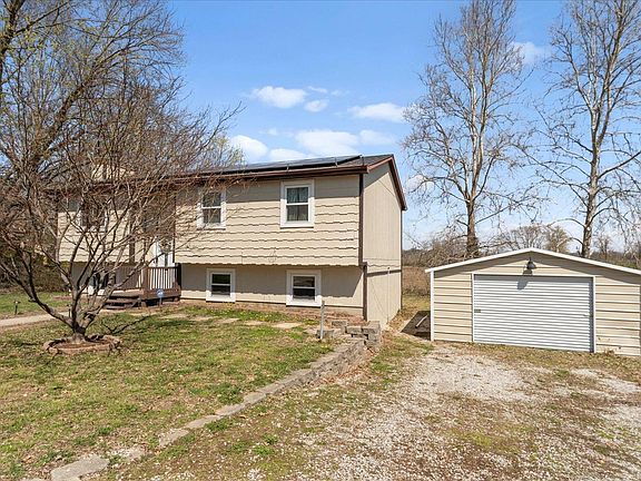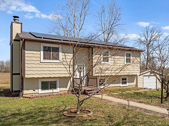 Welcome Home to 10 Damask! Spacious 4 bedroom, 2 bathroom home on a low traffic cul de sac and backs to private scenery! Walk up the wood staircase to the main floor where you will find an updated kitchen and spacious separate dining area. Breakfast bar and atrium window are perfect for flowers or herb and morning coffee. The kiitchen sliding door walks out to newly painted deck, large yard, fire pit and covered deck area. Adjacent large living room to the dining area, suitable for entertaining or relaxation! Primary bedroom and 2 spare bedrooms located on upper level with access to hall shared bath. Lower level has nice size recreation room, full bathroom, 4th bedroom, large mudroom and 2 other bonus rooms with windows and closets. Don't forget the oversized detached garage for storage or to keep your vehicle covered in winter! Freshly painted, new roof, solar panels-this wonderful home is ready for its next chapter with new homeowners! Don't miss out!