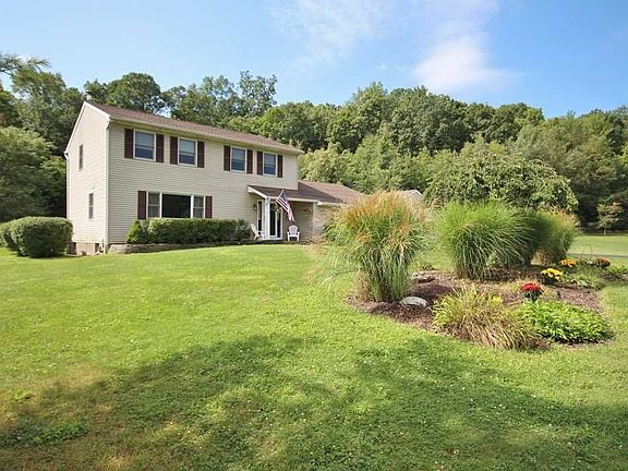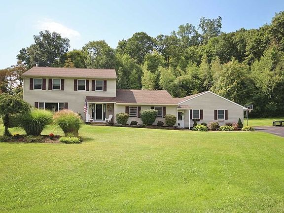 This property is characterized by its well-maintained, sizable colonial style home along with the tranquil, private, park-like land that it sits on. Set in a small and intimate sub-division and at the end of a cul-de-sac, this home will surely captivate your heart and help create a vision for what you and your family can grow into. The house is open and bright and offers 4 bedrooms, 2.5 baths and 2700 finished square feet. Through the front door, you will be invited into the home through the foyer. To the left, is the living room, which connects to the formal dining room and kitchen. The kitchen has a granite countertop, tile back-splash and a high-top eat-in area. Adjoining the kitchen, is a very large family room with recessed lighting and a pellet stove. This space boasts so much usable square footage and allows for plenty of room for the tv, furniture plus a kid's playroom and/or office space. The kitchen and family room connect directly to the exterior of the home. From the sliding glass door, access the outdoor oasis, marked with an oversized deck with a gazebo, a hottub, a pool, a firepit and plenty of room for lawn games, making this home so ideal for hosting family and friends. The land is over 2 acres in size and the trees, plants and lawn been cared for with so much pride. Next door to the property, is a 120 acre farm. Remaining on the first floor is a half bath, a mud room with a side entrance to the home, a laundry area and access to the 2-car garage on the first floor. The second floor has four bedrooms including a master bedroom with a full bath and one additional full bath. There is a basement that is ideal for storage and plenty of closet space throughout the home. Much of the interior of the home has recently been painted. Being that the home is private yet conveniently located to all that the area has to offer, also makes it idyllic. In less than 10 minutes arrive at the Taconic State Parkway, Route 55, schools, shopping, restaurants, libraries and the James Baird State Park which has golf, tennis and hiking. This property is spectacular! It is a wonderful opportunity to take advantage of the low interest rates and to own in the Arlington School District!