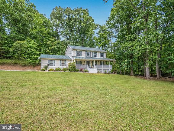 TUCKED AWAY THIS THREE LEVEL HOME IS SITUATED ON 2 ACRES FILLED WITH TREES. ENJOY YOUR MORNING COFFEE ON THE WRAP FRONT PORCH OR ON THE LARGE REAR DECK. EITHER WAY YOUR VIEW WILL BE SEEM LIKE A PRIVATE OASIS. A METAL ROOF FOR THE COUNTRY FEEL AND AN OVERSIZED SIDE LOAD TWO CAR GARAGE. THE FULL BASEMENT READY FOR YOUR DESIGN WITH OUTSIDE ACCESS THROUGH A WIDE WALK UP STAIRWELL. THE MAIN LEVEL OFFERS EAT KITCHEN PLUS FORMAL DINING ROOM, LIVING ROOM AND COZY FAMILY ROOM WITH GAS FIREPLACE, MAIN LEVEL OFFERS A POWDER ROOM. THE UPPER LEVEL IS FILLED WITH FOUR BEDROOMS AND TWO FULL BATHS. THE PRIMARY BEDROOM WITH PRIVATE BATH AND WALK IN CLOSET. SELLERS ARE GIVING A $5000 CARPET ALLOWANCE. (Please understand that the Kitchen is Laminate Wood(not vinyl);Master and downstairs bath bath are ceramic tile; Upper hall bath is vinyl)