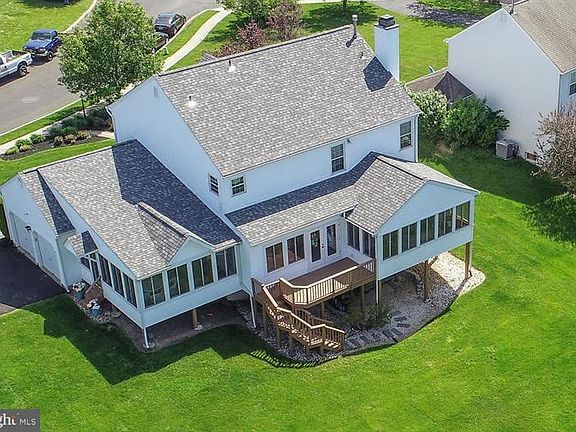 Spacious and Gracious this Doylestown Knoll Colonial welcomes you with a personal winding pathwayfrom the sidewalk to the front door. This home is situated on an oversized .36 acre lot nestled in the heart of The Knoll. Cross the threshold into the two-story foyer where the formal Living Room and Dining Rooms are to each side creating a traditional and impressive Colonial front Hall Entrance. The original Devon floor plan has been enhanced with significant additional living space right where you want it. The Family Room offers a marble surround gas fireplace creating effortless and timelyambiance. Step into a beautiful wood encased Second Family Room called The Gathering Room which adjoins it creating a seamless flow for entertaining and enjoyment. The kitchen has abundant counterand cabinet space with an additional island and two door pantry. The kitchen footprint was extended to include a wall of windows to brighten the added Breakfast Room which also exits to the exterior Deck with circular stairs to the ground level. Another extra is the Three Season Porch off the Kitchen which isideal for entertaining regardless of weather challenges. The first floor boasts gleaming Brazilian Cherry hardwood floors in the Living, Dining and Family rooms while the Gathering Room offers beautifulMahogany floors. The Kitchen and Powder Room have easy to care for tile flooring. Kitchen and Baths have been updated with newer appliances, fixtures and vanities. The Lower Level is Walk Out and offers 1, 000+ square feet of finished living area with a Study, Full Bath, storage and plenty of carpeted extra space for enjoyment as you best define it. Included with the home, at no value, is a 6 person hottub tucked discreetly off the patio door egress.Upstairs are the private quarters with a Master Bedroom with cathedral ceilings and twin walk inclosets. Master Bath has been updated with easy care shower as well as oversized jacuzzi tub. Threenicely sized Bedrooms share the Hall Bath. Lovingly cared for this home features custom crown moldingin many areas, newer replacement windows with lifetime warranty, newer mechanicals and a new roofin 2019 with documented transferable 50 year warranty. The two car garage is a side entry creating aprivate and secure entrance. This is a Must See Home that shows pride of ownership throughout and isdesigned for your lifestyle and enjoyment. Owner is licensed PA real estate agent. Thank you for your consideration.