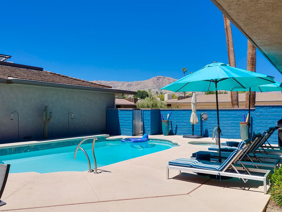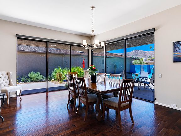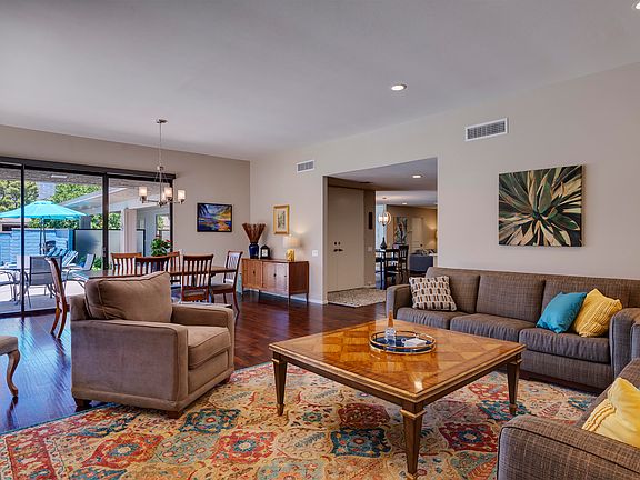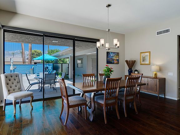This nicely updated pool home reflects the casual elegance today's home buyers expect. A paver driveway leads to the steel and frosted glass gate. The private, front loaded pool and spa greet you as you enter the property. There is an abundance of open living space boasting a formal living and dining room and sitting area off the guest bedrooms. A spacious family room is just off the kitchen . The large, white and bright kitchen features stainless appliances and new quartz countertops. The bedrooms are all very large and each has an en suite updated bath. Gorgeous engineered wood veneer floors can be found throughout. The sellers of this beautiful home have replaced both HVAC systems and installed a tankless water heater and LED recessed lighting. The double car + golf cart garage has direct access to the house. A whole house leased solar system helps keep those electric bills low. The Springs Country Club is a renowned golf community in beautiful Rancho Mirage. Loads of outdoor activities, world class shopping and fabulous dining can be found within minutes of this beautiful, move in ready home.