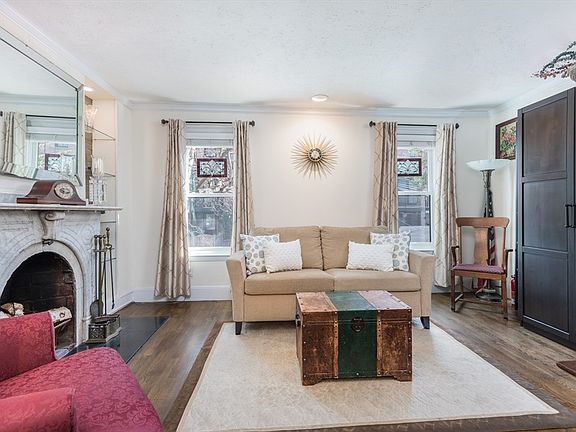 Nestled in the heart of the South End’s coveted Golden Triangle, this exceptional home sits on a quiet dead-end street, offering a rare sense of privacy & community that can often be lost in the city. This tranquil 1-bedroom duplex welcomes you with an inviting South facing sunlit living room, where an exposed brick accent wall, warm wood flooring & decorative marble fireplace create a gracious & timeless feel. The front facing bedroom boasts double custom closets, built-in shelving & drawers, and an adjacent full bathroom for convenience and comfort. The lower level offers a versatile living/dining space with stunning picture windows, perfectly framing views of the mature flowering garden & private patio —an ideal retreat for relaxing or entertaining. The kitchen features updated stainless-steel appliances, plentiful cabinetry & pantry, maximizing functionality and style. Additional highlights include central air, in-unit washer/dryer, & a rare, oversized storage room. Pet friendly.