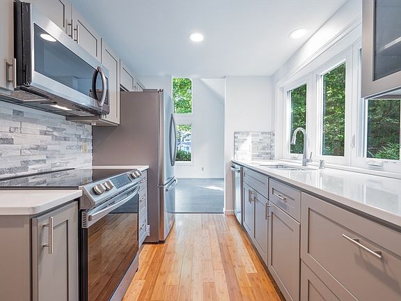 Welcome to 10 Davis Farm Rd, Ashland—a stunningly remodeled modern contemporary home that feels brand new! This 3-bedroom, 2-bath beauty has many new features including a beautiful kitchen, bathrooms, windows, exterior siding, heating system, AC, and water heater. Gleaming hardwood floors and fresh paint elevate the entire space. Enjoy the vaulted cathedral ceiling in the family room, complete with a cozy fireplace, or step out onto the new deck overlooking your private backyard. The finished basement offers additional living space with a walkout to the yard. With a 1-car garage and prime location just across from Henry Warren Elementary and minutes from major routes and the M.B.T.A. Station, this home combines modern luxury with unmatched convenience.