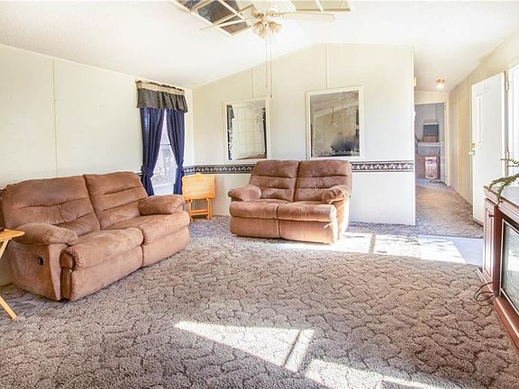 Wonderful living in a rural setting. It's a 3BR 2ba, well designed manufactured home with bolted down shipping containers attached to the garage for a storm shelter. Spacious kitchen with island and INCLUDES ALL APPLIANCES! MBR has walk in closet, private bath with garden tub and shower. 8" well installed a few years back. You'll love the garage setup. home is 1216 sqft+- 1.52 acres. Full price offer includes home warranty from Home Warranty of America. This home can also be purchased with lot 39 vacant land located at 9 Deer Run (1.26 AC) for a total of 2.78 acres +- at $70k. Enjoy rural living in a great location and the highway is only a few minutes away.