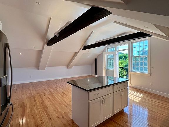 Spectacular upper level riverfront condominium in the charming village of Shelburne Falls. The dramatic interior has a bright and open floor plan with exposed original mill beams, and beautiful hardwood floors throughout. You will love cooking and entertaining in this large kitchen that is open to the dining and living area. The primary bedroom has a private full bath. In addition there is a second bedroom, full bath and laundry. Also featured is a balcony overlooking the falls. Located near grocery stores, pharmacy, library, banks, wine & kitchen shop, restaurants, famous Bridge of Flowers & more. There are a total of 9 units and 4 have already sold. The residents of Mill Falls Condominiums love where they live, “They are well designed and constructed. We are proud to invite our family and friends in to see them, with the potholes right outside our doors it is a very unique place and a pleasure to now be part of it".