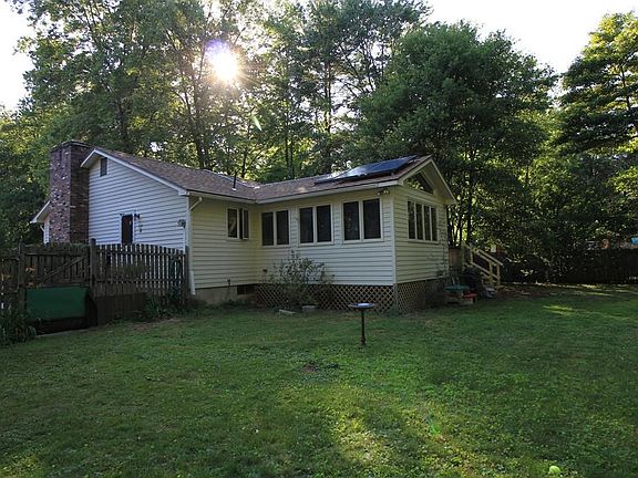 Fantastic opportunity to own in one of Easthampton's most family friendly and sought after locations! This "L" ranch home offers single level living with 3 good size bedrooms, cozy living room with fireplace and a generous family room addition overlooking the fenced in rear yard space. The open & airy feeling inside is further enhanced by the cathedral ceilings encompassing the kitchen and living room. Also contained in this well maintained home is a partially finished basement with a 1/4 bath. New roof in 2013(Apo) along with a 2015 solar system supplementing the energy costs. Showings begin at the open house Sunday July 10th 12-2pm.