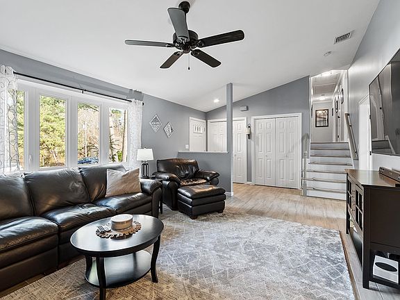 Welcome to 10 Delaney Way, where all you have to do is move in! Located at the end of a quiet cul-de-sac in a highly desirable Salem neighborhood, within minutes from Tuscan village, shopping, restaurants, and entertainment! This tri-level home checks all of the boxes. On the main level, you'll find an oversized living room with vaulted ceilings, dining room with access to the screened in porch, and an the updated eat in kitchen with stainless steel appliances, white quartz countertops, vaulted ceilings and a skylight filling the space with natural light. As you head to the next level, there is an updated full bathroom and three generously sized bedrooms, one including the primary bedroom with double closets and updated bathroom with tiled shower. The lower level features a large family room, complete with updated 3/4 bathroom with tiled shower, a cozy pellet stove just in time for the colder weather, and access to the oversized garage. The unfinished basement allows for ample storage space. Enjoy entertaining? You will love the backyard. Off of the screened in porch, there is a composite deck leading down to the custom patio and fire pit. Don't miss this one!