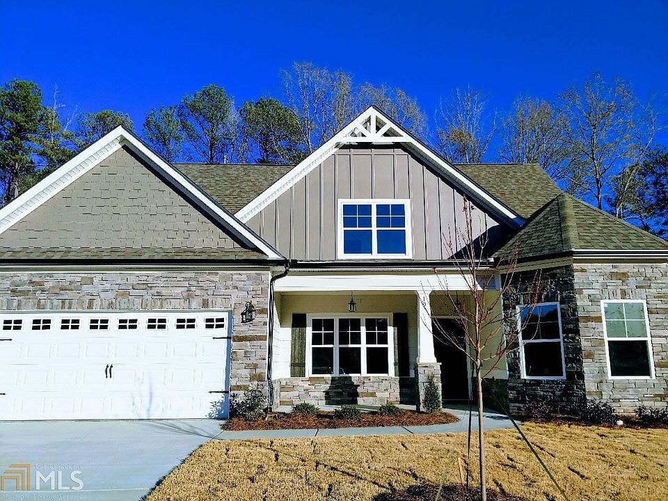 Dansby C plan with 4 bedrooms, 3 baths. Master and one other bedroom on main. Two bedrooms and full bath upstairs. Kitchen with island is open to vaulted great room. Formal dining room. Upgraded cabinets and hardwood flooring. Covered front and back porches. Fully sodded lawn.