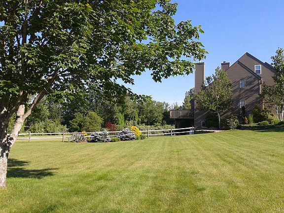 End-unit FHA-approved condominium with a view, set atop a hill. 3 miles from I84, 5 miles from UConn-Storrs. 2 or 3 bedrooms (or 1 office-room), 2.5 baths, 3 levels, walkout finished lower level open to first floor. Loft with skylight, hardwood flooring, 2 gas fireplaces (stove-style in lower level), track-lighting slides from low to bright. 4 ceiling fans, corian countertops. Bose speakers in main-level living room. Interior painted 2012. Exterior painted 2013. Unit is in building 3, built in 2000. Neighborhood Description Situated in River's Edge Condominiums, a 33-unit neighborhood, well-kept by its residents.