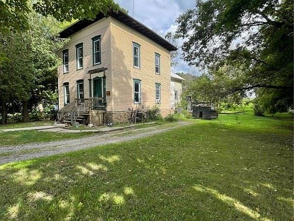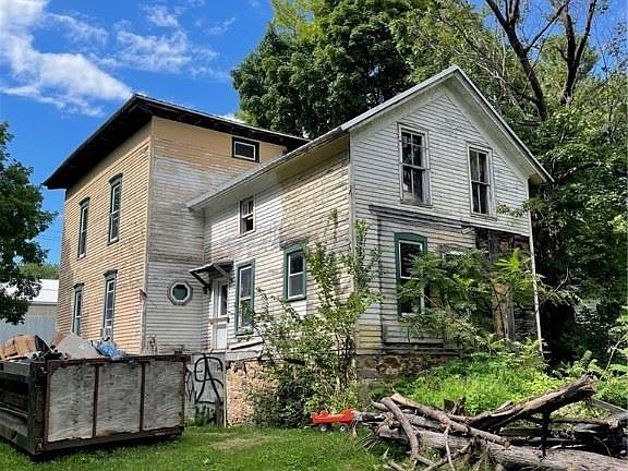 Almost Livable if you don't mind walls that are begging for paint inside and out , carpet that has seen better days and an old barn structure out back that burned but the walls are still there. This great big home just became to much for 1 person and now its time to let someone else fix it up. Everything in this house is on a large scale with high ceilings and big rooms. There are 2 living rooms but one has been converted into a bedroom so the potential for a downstairs bedroom is possible. Roof was new 10 years ago. Dining room was recently remodeled. Huge bathroom on first floor and has been remodeled. Every room on the second floor needs work but the potential for beauty is there. Large kitchen that started new wiring but never got to the finish line. Side entrance to the dining area was recently removed so front entrance only . Calling all investors and people that love homes with character to take a look at this possible gem to make beautiful again.