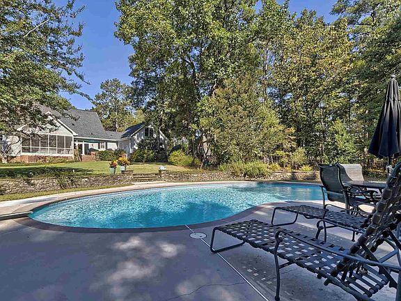Low Country Estate! 3.7 Acres, Pool, 4 car detached Garage plus 2 car side entry garage in Longcreek Plantation with no HOA! Relaxing wooded Circle driveway with plenty of parking! Beautiful wrap around porch, Inviting entry, Formal living room opens to dining room both with hardwood floors. Eat in Kitchen with lovely view of the pool, Solid surface counters, wet bar, Great Room with custom built ins and French doors leading to a large screen porch overlooking beautiful manicured yard and pool oasis. Master Bedroom with large walk in closet on main level as well a guest room and bath on main level. Upstairs has Two oversized bedrooms with double sized walk in closets plus extra walk in storage! One bedroom also has a sitting room attached! Large Laundry/ Mud room with huge pantry! Do not miss the Bonus room located off mud room. This immaculate home has hardwood floors throughout, new carpet in the bedrooms and a central vacuum. Outside you will feel like you are on vacation, resort style pool, with beautiful landscaping, pool house, shuffleboard, horse shoe pit. A incredible detached 1000 sq ft workshop / garage is over the top! Welcome home!