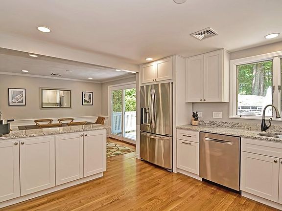 Perched high above the road in one of Bedford's most sought-after residential enclaves, this gorgeous, completely renovated home is ready for its new owners to turn the key & move right in! Main level features an open, airy floorplan w/ gleaming hardwood floors, beautiful millwork, and fresh paint throughout. Chic chef's kitchen w/ granite countertops, great storage, & s/s appliances opens to a lovely dining space w double glass doors to huge deck. Seamlessly entertain between the fireplaced living room and vaulted 3 season porch. 4 generously sized BRs including bright master w ensuite bath as well as another stylish full bath complete the floor. Capacious lower level is the perfect family or play room. Prepare to fall in love with the serene, nearly 1 acre lot replete w mature trees and plantings. Huge yard w swing set, fire pit. Oversized 2 car garage, central air, new HW, custom laundry room/half bath. Minutes to Bedford Center, 95, Rt 3. Truly a special place to call home!