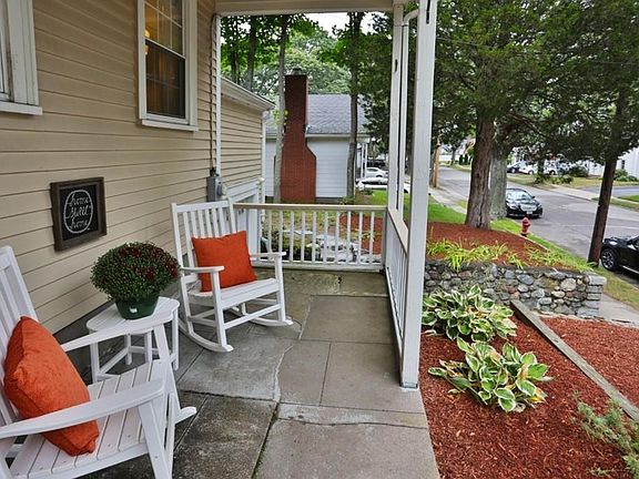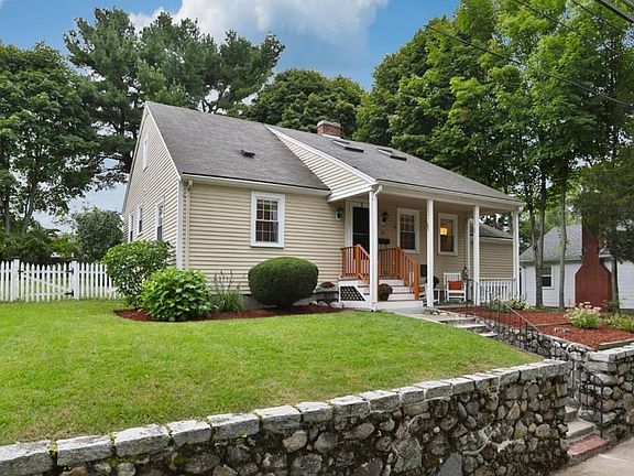 A charming Cape Cod styled home accented by a beautiful farmers porch! Feel the welcoming vibe from the moment you enter the fireplaced living room with gleaming hardwood floors, on point paint palette and an open floor plan flooded with natural light. Beautifully updated kitchen with white shaker styled cabinets, River White granite counters, stainless steel appliances w/energy efficient french door refrigerator. Your friends and family can sit around your dining table or spill out onto the deck overlooking a level fenced in yard for outdoor fun. An ample first floor bedroom, full bath and well placed home office complete the first floor. Two spacious 2nd floor bedrooms with newer w/w carpet, good closet space and the convenience of a 2nd bath. Other home updates are interior paint, Nest fire/carbon monoxide detectors, light fixtures & custom radiator covers and a 2017 irrigation system added to the front and back yard with professional landscaping. Robin Hood School neighborhood!