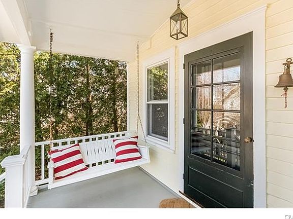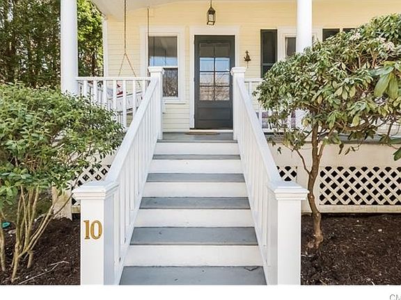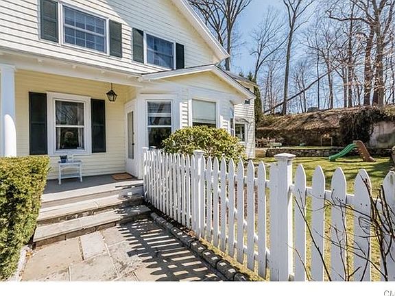 Delightful Victorian Farmhouse w. wrap-around porch, located on a quiet lane within easy walking distance to train and town. This home is "Vintage Rowayton", w. important updates, including: MBR Suite w. new wall-to-wall carpeting, private bath, generous closet space, vaulted ceiling and sliders to balcony overlooking the backyard and flagstone patio; light and bright Family Room w. custom built-ins, fireplace and sliders to outside; adjoining Eat-in Kitchen w. laundry and all new stainless steel appliances; first floor powder room; formal living and dining rooms w. wood flooring. The 3rd flr attic adds space (approx. 300 sf) for work, study or play. Central air. Off-street parking.