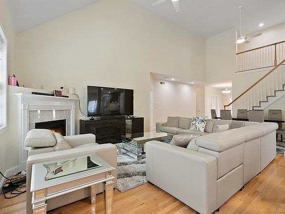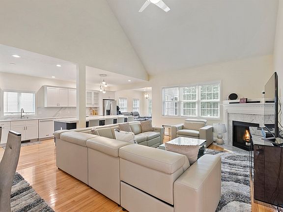 Tiled walk-in showerHigh and vaulted ceilingKitchen barAll new kitchenGleaming hardwood floorsWall chimney range hoodQuartz countertops
