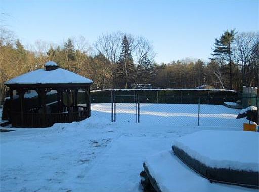 This lovely hilltop Split Entry Home is located on a secluded Cul de Sac in North Tewksbury on the Andover line. Features newer thermal windows, gleaming hardwood floors, recent neutral interior paint, oak kitchen cabinets, countertop lighting. A newer Cathedral Sunroom overlooks the Patio, fenced pool, gazebo,10' x 12' shed and fenced vegetable garden .Walk out Lower level boasts a 22 X15 Family Room with gas fireplace and full windows for natural lighting. Also washer and dryer included with a Cedar Closet, cabinets and counters for summer fun at the pool area, garage with auto insulated door and storage area. Exterior is vinyl sided with paved driveway, 24' x 16' patio area and perfect entertainment set up with picnic bench facing fenced "easy maintenance" pool with automatic vacuum and solar cover extending the usage for several weeks in the spring and fall!