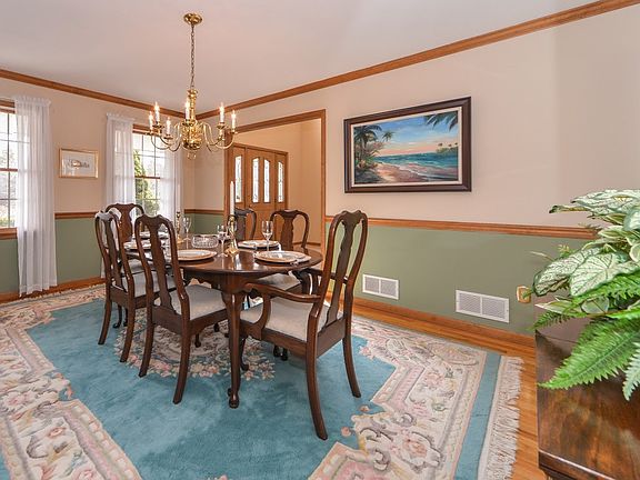 You'll cherish this pristine Victorian style home, showcasing a beautiful wrap-around front porch, tucked away on a quiet street in the distinct Country Classics community. This enamoring property features a roomy eat-in kitchen highlighting a large bay window boasting picturesque, backyard views. Adjacent to the kitchen is a sunken family room accented by tall sunburst windows and wood burning brick fireplace, plus access to your front porch or inviting three season room. In addition to formal living and dining rooms, you'll find a bedroom/office on the first floor, equipped with a walk-in closet and stairs ascending to a large, floored attic, which could eventually be converted into additional living space. This impeccable home offers four more bedrooms upstairs including a spacious master suite spotlighting an exterior balcony, walk-in closet, en-suite bathroom with dual door entry, vaulted ceiling, skylight, separate vanity area, Jacuzzi tub, stall shower and linen closet. The hallway bathroom offers a tub/shower combination and convenient dual sinks. More amenities include hardwood floors, first floor laundry room, security system, full basement, whole house humidifier, water softener, water filter, recessed lights and newer furnace, air conditioning, roof, driveway, hot water heater and carpeting. The kitchen refrigerator, washer and dryer are also included. A secluded yard offers a Paver patio, full irrigation system, exterior lighting, privacy trees and shed for all your storage needs! All this, and just down the street from Amsterdam Elementary School, and minutes to town, shopping and major thoroughfares! A truly enchanting property!