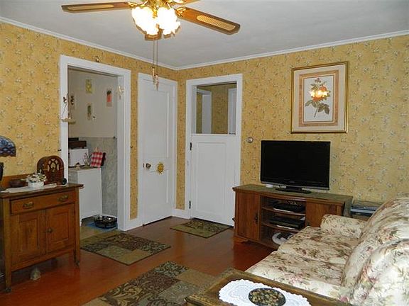 Adorable home with many updates, NEW windows, Newer Roof, New insulated siding, NEW bathroom, move right in! This home is perfect for a first time home buyer. Master Bedroom has walk in closet.2 large storage sheds in the private yard, one has electric and is used as a hobby room. Large garage under residence with interior entrance to home and basement. Current homeowner has updated it all! Move right in!