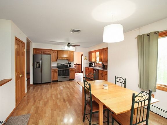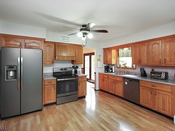 This raised ranch home is perfectly situated on nearly one and half private wooded acres. Nearly 3,000 square feet of space is waiting for you to move right in. The living room has been updated with newer floors and features a brick fireplace. the large eat-in kitchen is modern and boasts ample cabinet space and a pantry. Master bedroom is sizable and features a master bath with dual sinks and a stall shower. Finished walkout basement with 4th bedroom and full bath. Also features a large rec room and bar. Enjoy morning coffee on the large deck overlooking the yard and woods. Privacy abounds!! Easy commute on Routes 46 or 80, take a look today!!