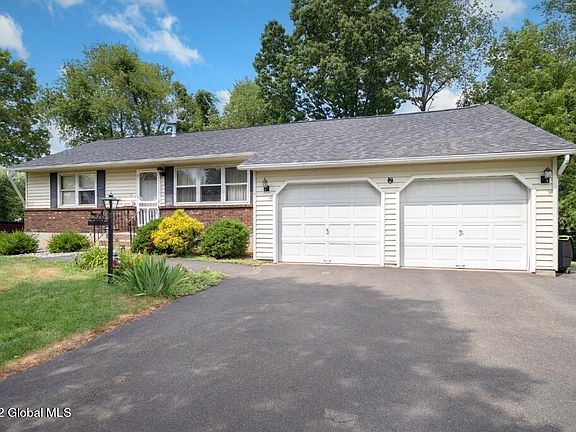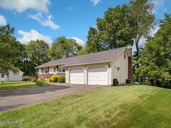 Spacious split ranch home in highly desirable Riviera Estates bordering the award winning Forts Ferry Farm. 2 bedrooms on 1st flr and primary suite (3rd BR) on second with full bath. Formal LR and eat in kitchen leading to sunken family room with fire place leading out sliders to private yard. Many updates including new roof, furnace, H20 tank, central air, and some appliances. North Colonie schools and much more.