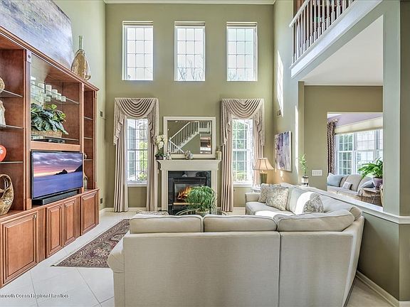 Location Location Location one of the most private & larger lots in desirable Tolls Bros Riviera of Freehold. Spectacular home featuring an Open Floor Plan. 2 story Grand family room with custom built-ins & gas fireplace. Formal living & dining rooms add to the space. Gourmet eat-in-kitchen with 42'' maple cabinets, granite countertops, huge center island, SS appliances & all the ''bells & whistles''. Sit & relax in the roomy sunroom overlooking the parklike setting w/extensive paver patio. Master BR suite complete with attached full bath & WIC. 2nd Bedroom on the main level. Large Loft w/ custom built-in, 2 separate Bedrooms & Full Bath. 2 car garage w/stairs to storage area. Elegant porcelain floors. Freshly painted. Decorative moldings. Generac generator. A must see!