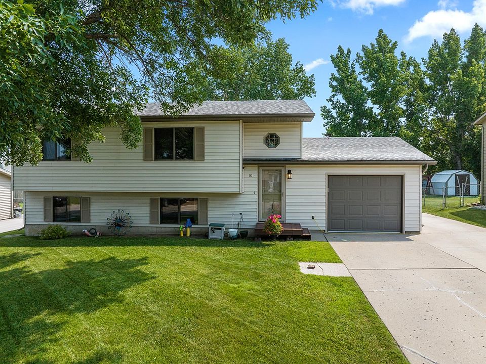 Welcome to your new home located at 10 Durango Drive in Burlington, ND -- a warm and inviting split foyer home ideally located near Burlington Elementary School. This adorable 3-Bedroom, 2-Bathroom residence offers a perfect blend of comfort and convenience. The main floor features a cozy, carpeted Living Room open to the Kitchen & Dining Room featuring hard-surface flooring and also provides access to the backyard through a sliding glass door onto a beautiful, 14'x12' wood deck. Two comfortable Bedrooms and a Full Bathroom complete the upper level. The daylight basement hosts a large Family Room, perfect for entertainment and leisure, along with the third Bedroom, a Full Bathroom, and a functional Laundry/Storage Room. Outside, you will find a nice yard, a 14'x14' concrete patio, an additional parking pad, and a shed for extra storage. Don't miss out on this wonderful home! Contact your Realtor today for a showing!